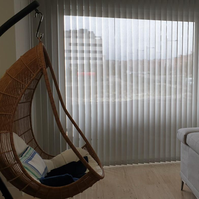 Las cortinas verticales Cortiprime, con lamas de 89 mm o 127 mm, ofrecen un excelente control de la luz y la privacidad, siendo ideales para ventanas amplias y puertas balcón.